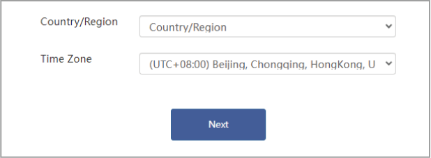 - Select the Country/Region and Time Zone.