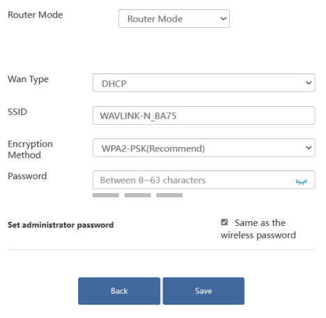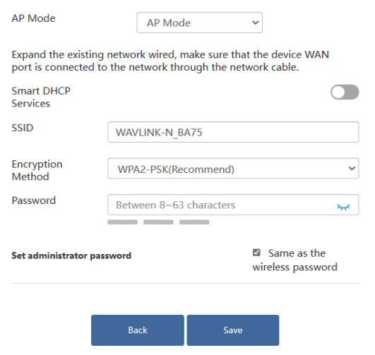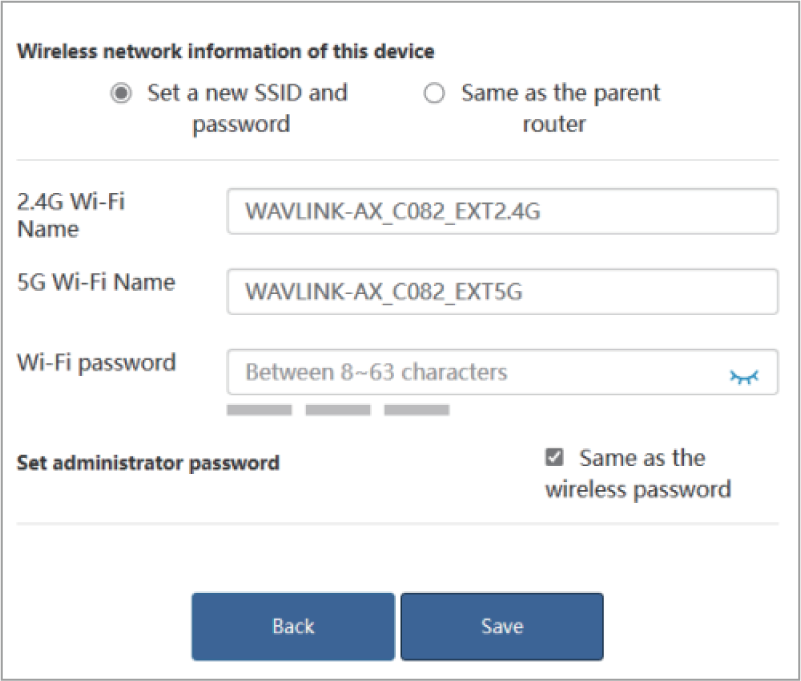 - Create a new WiFi password for WAVLINK device and click Save.