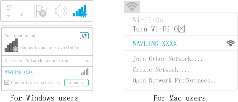 - Connect the WiFi signal of WAVLINK device. The WiFi name should be WAVLINK-XXXXX.