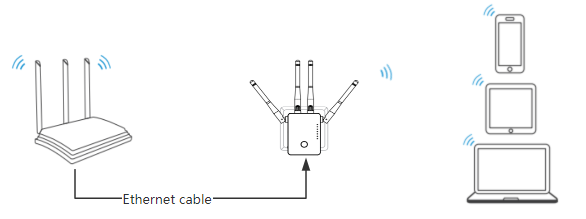 In Router mode, you should connect the WAVLINK device to the host router via Ethernet cable.Then you could get Internet from the WiFi signal of the WAVLINK device.