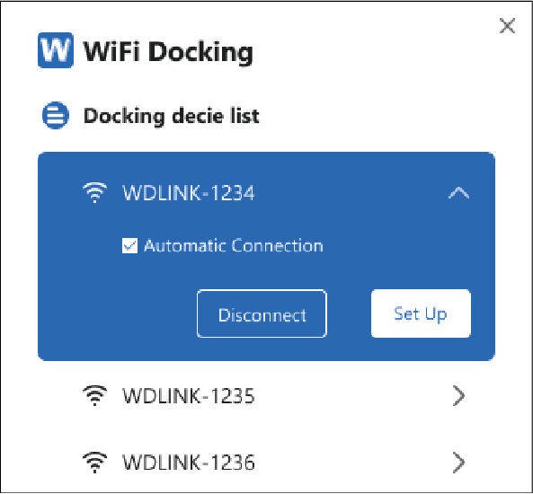 Step 6: Click on the WiFi Docking APP on the computer desktop, a window will pop up to search for the Dock's WiFi.