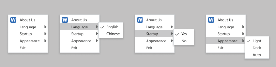 Step 1: Right-click the WiFiDock icon on the taskbar to change the Language, Startup, Appearance setting.