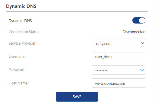 Different dynamic DNS service provider may provide various parameters, and the name or indication may vary. Therefore, you should look up the corresponding explanation so that the correct parameters are inputed.