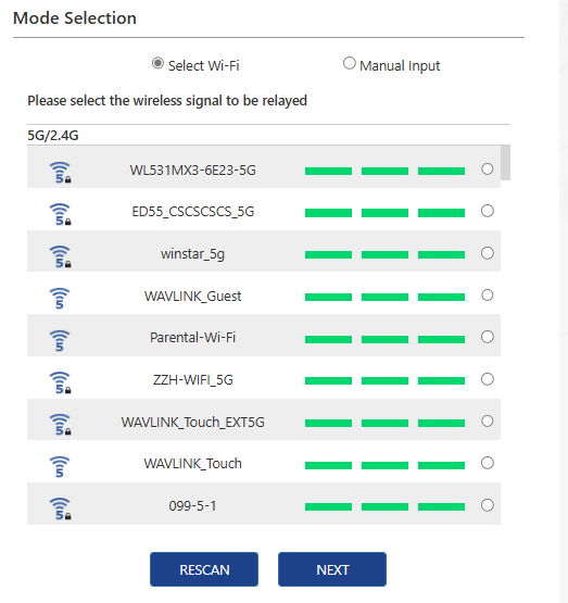 - 1)Click NEXT to rescan the Wi-Fi signal.