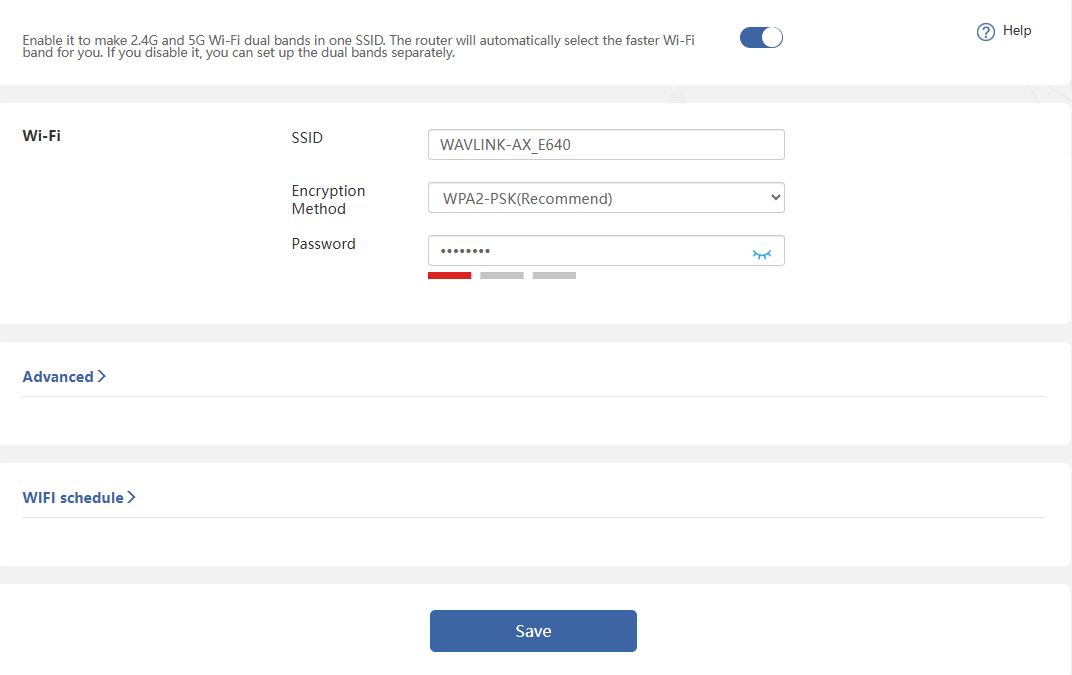 When enabled Band Steering, both 2.4GHz and 5GHz wireless networks share the same Wi-Fi name. The router will dynamically assign devices to the optimal frequency band based on real-time network conditions. When disabled, you may configure separate Wi-Fi names and settings for the 2.4GHz and 5GHz bands.