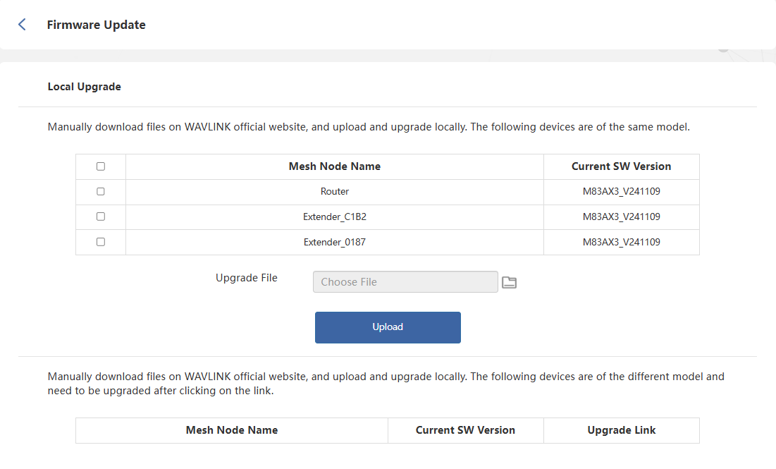 WAVLINK provides two methods to upgrade your firmware: Local Upgrade and Online Upgrade. You can choose one of them to update your firmware.