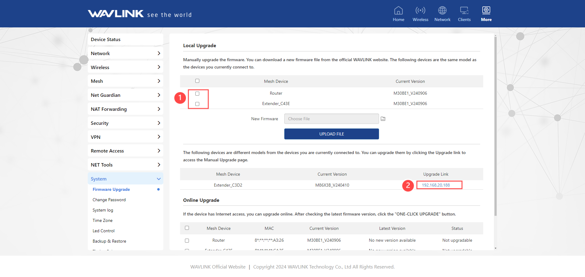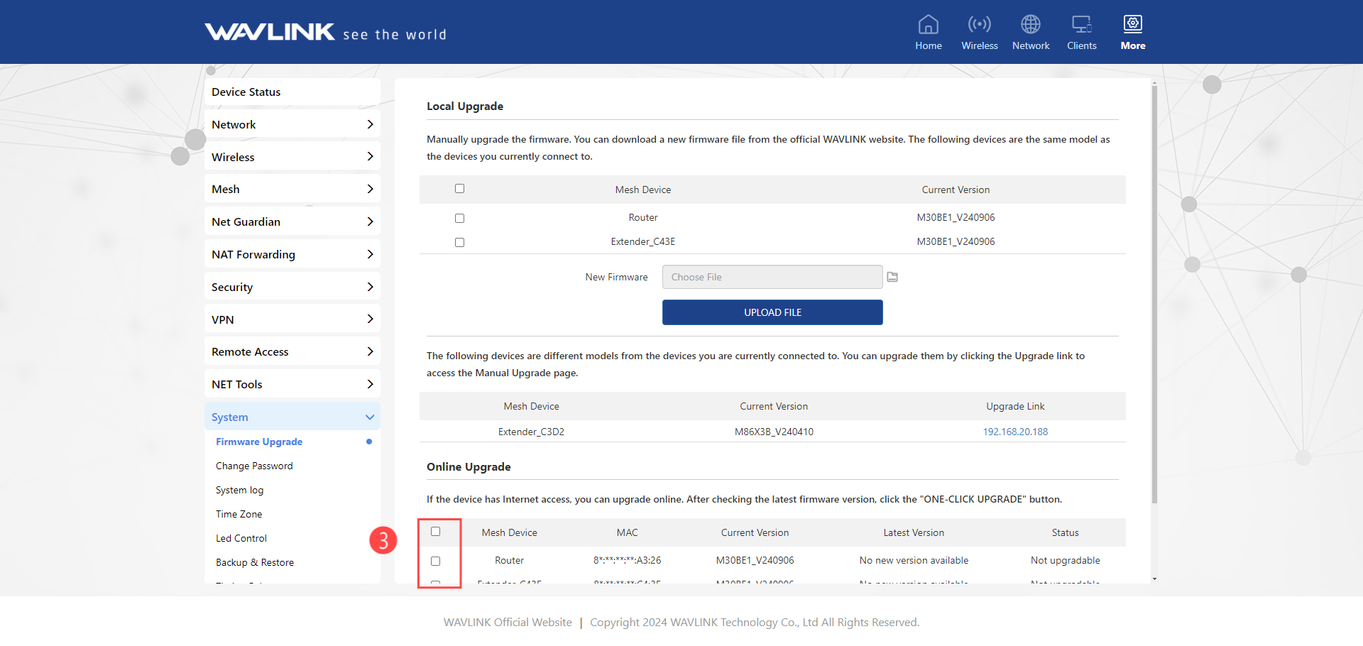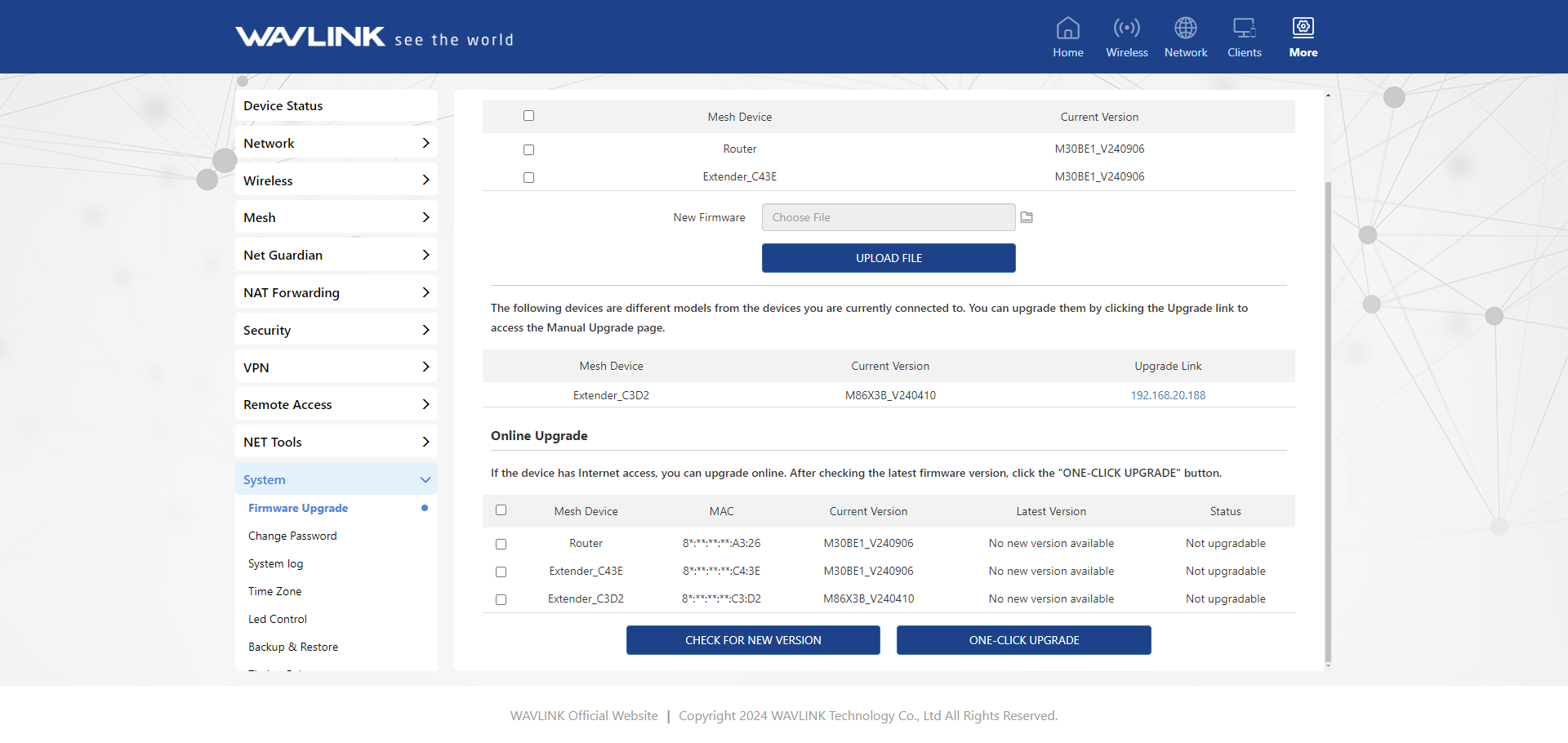 - Click on One-Click Upgrade, and wait for the firmware upgrade process to complete.