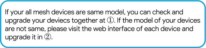 - Select the Mesh Node Name in ❸ that needs to be upgraded.