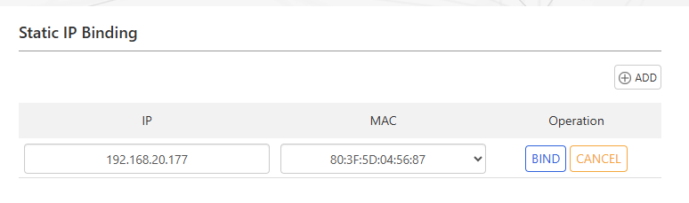 3 . Input the IP and MAC, then click BIND.