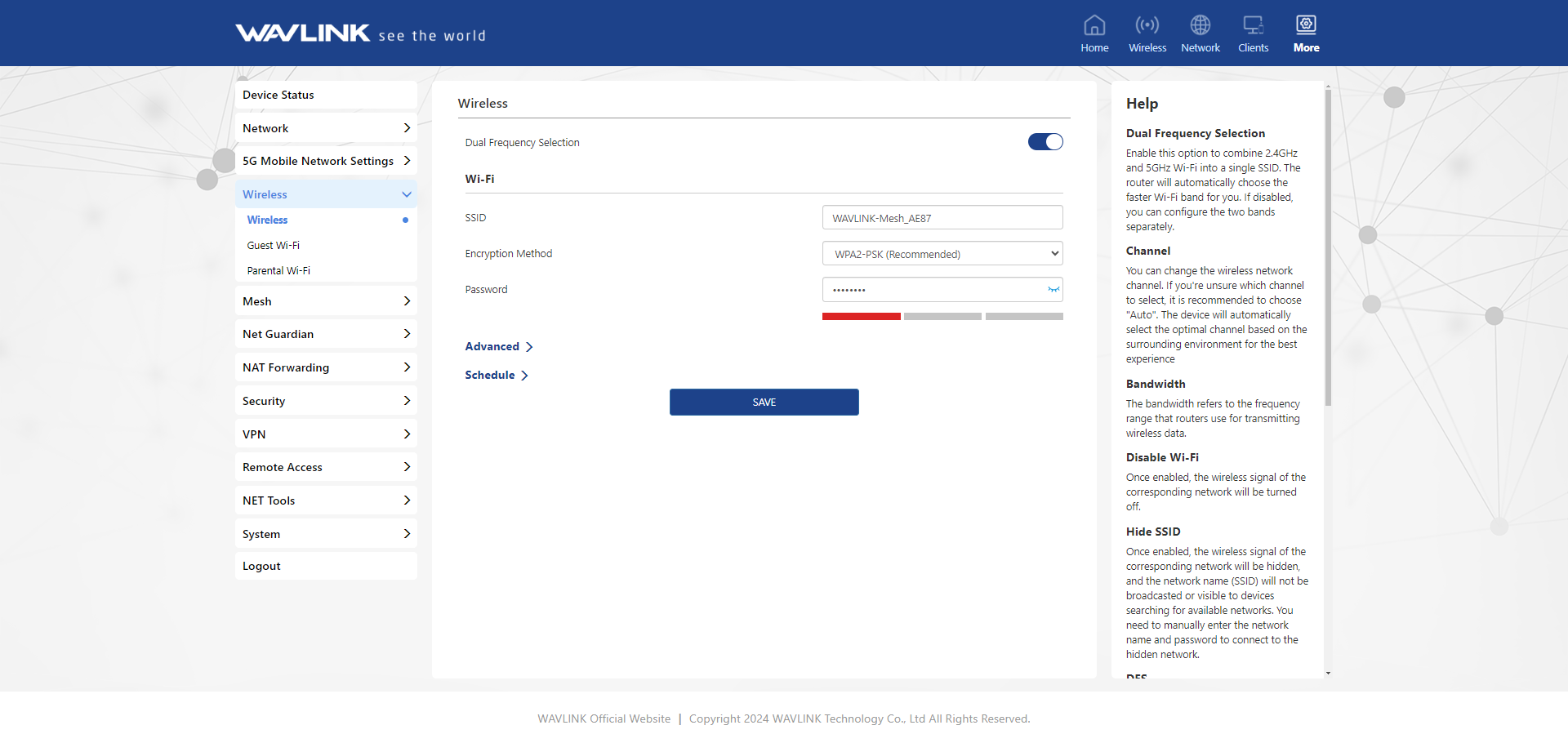 When you need to change your Wi-Fi password, please click “More”, enter Wireless, and click "Wireless".