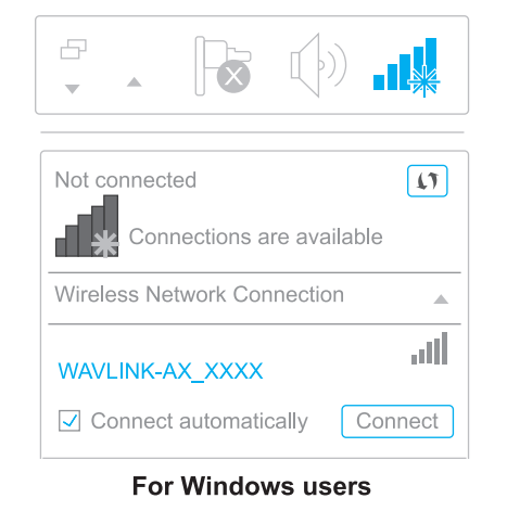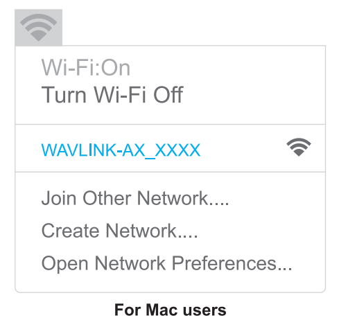 On your laptop or smartphone, connect to the default SSID printed on the router: WAVLINK-AX_XXXX.