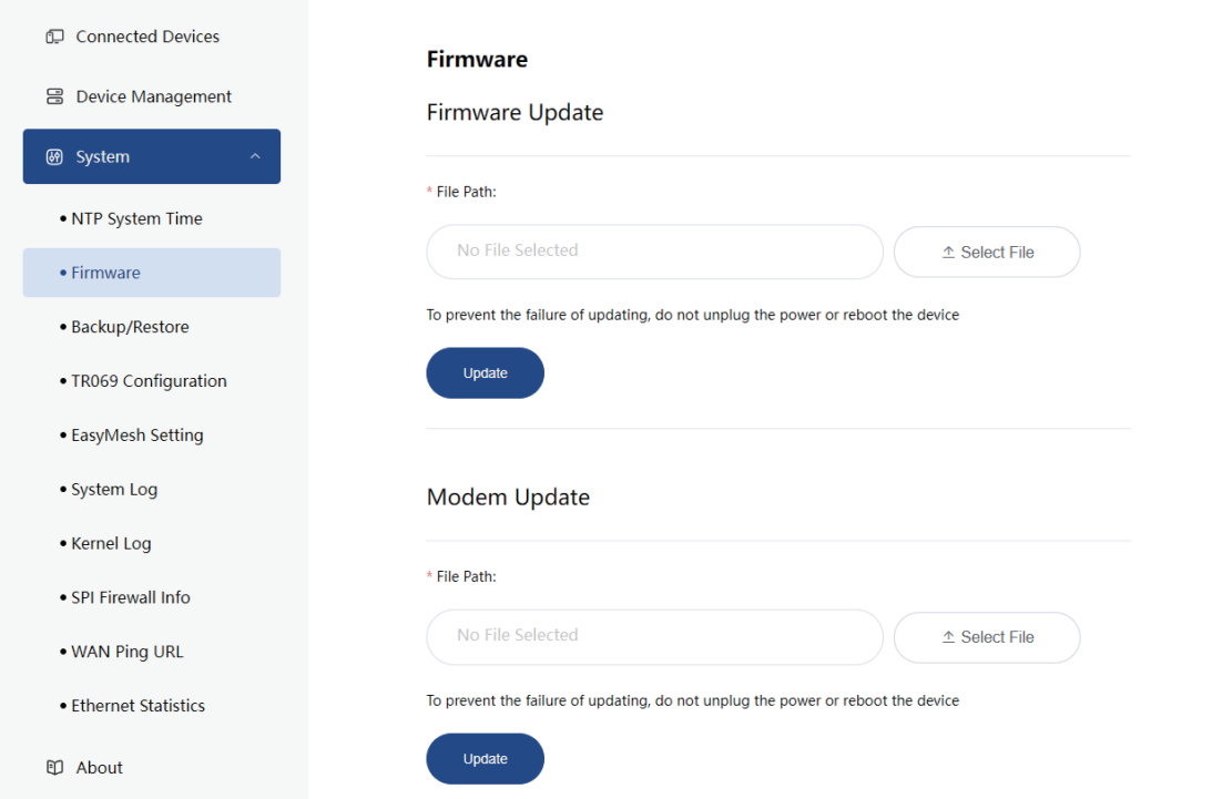 Click on “Update” and wait for the firmware upgrade process to complete.