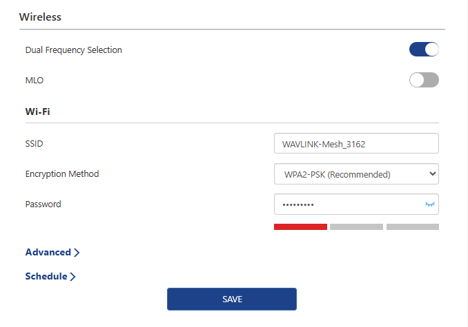 Configure the SSID, encryption method, password, and other wireless parameters for both the 2.4G and 5G networks.