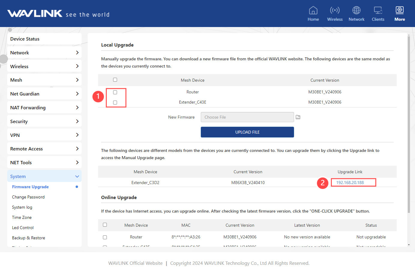 - Click More>System>Firmware Upgrade.
