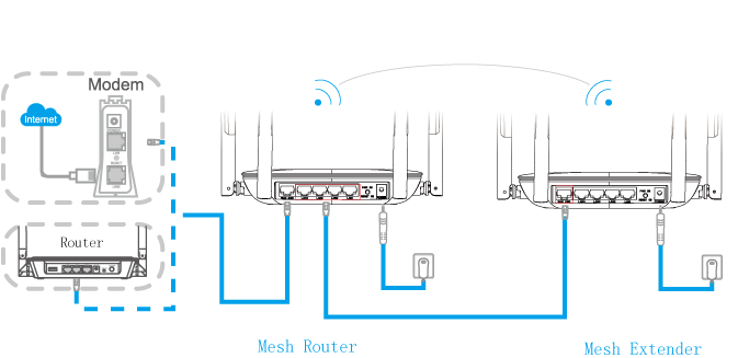 2. After mesh router is paired with mesh extender section, please connect the WAN port of the extender to LAN port of your router.