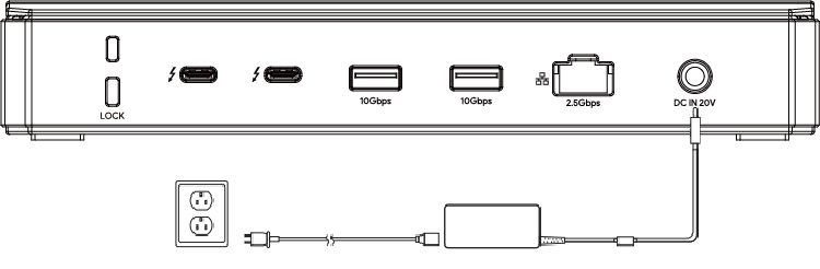 1. Plug one end of the equipped Power Adapter into the DC IN 20V port on the Docking Station.