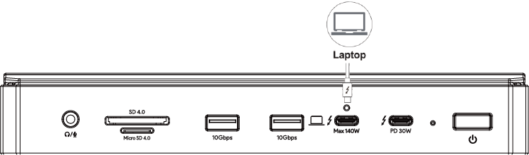 1. Use the provided USB-C cable to connect the USB-C Host port on the Docking Station to the Thunderbolt port on your laptop.