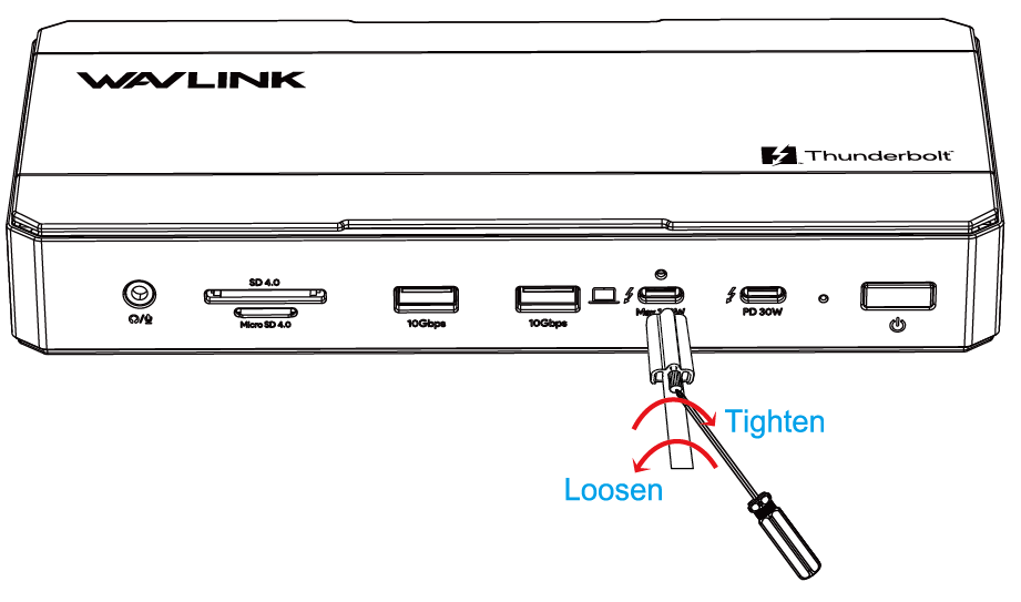 3. Tighten the screw on the cable holder to secure the cable, you can use a screwdriver as shown, tighten clockwise or loosen and remove counter-clockwise.
