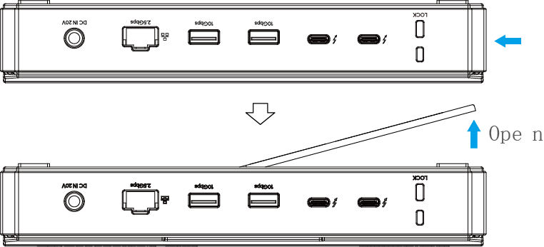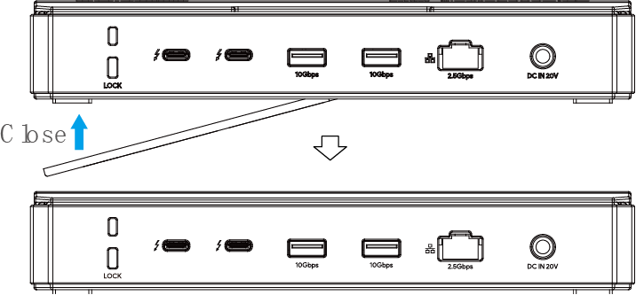 Note for Cable Holder: The cable holder is designed to tighten the USB-C cable. If you are worried that the USB-C cable might loosen, please follow the following steps to install the cable holder to the dock.