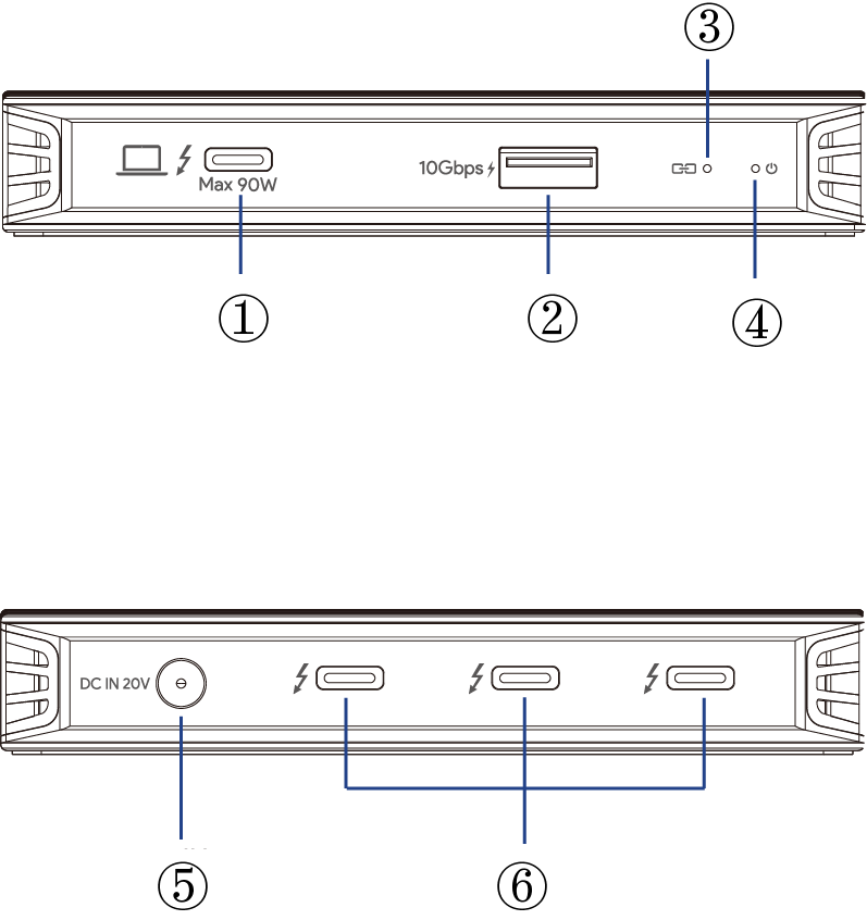 ① Thunderbolt 4 Upstream Port(40Gb/s, Max. 90W)