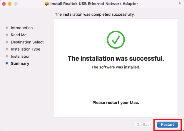 After the Driver is successfully installed, select Finish to exit the wizard.