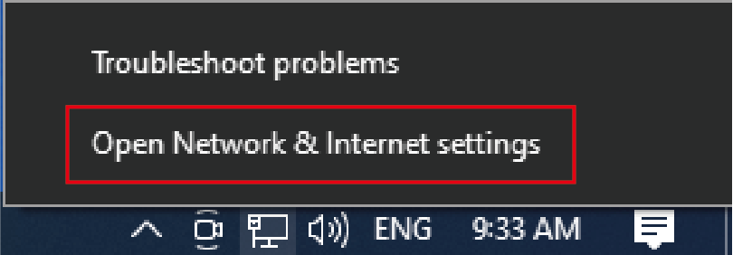 - Right-click the network icon in the system tray and select Open Network&Internet settings.