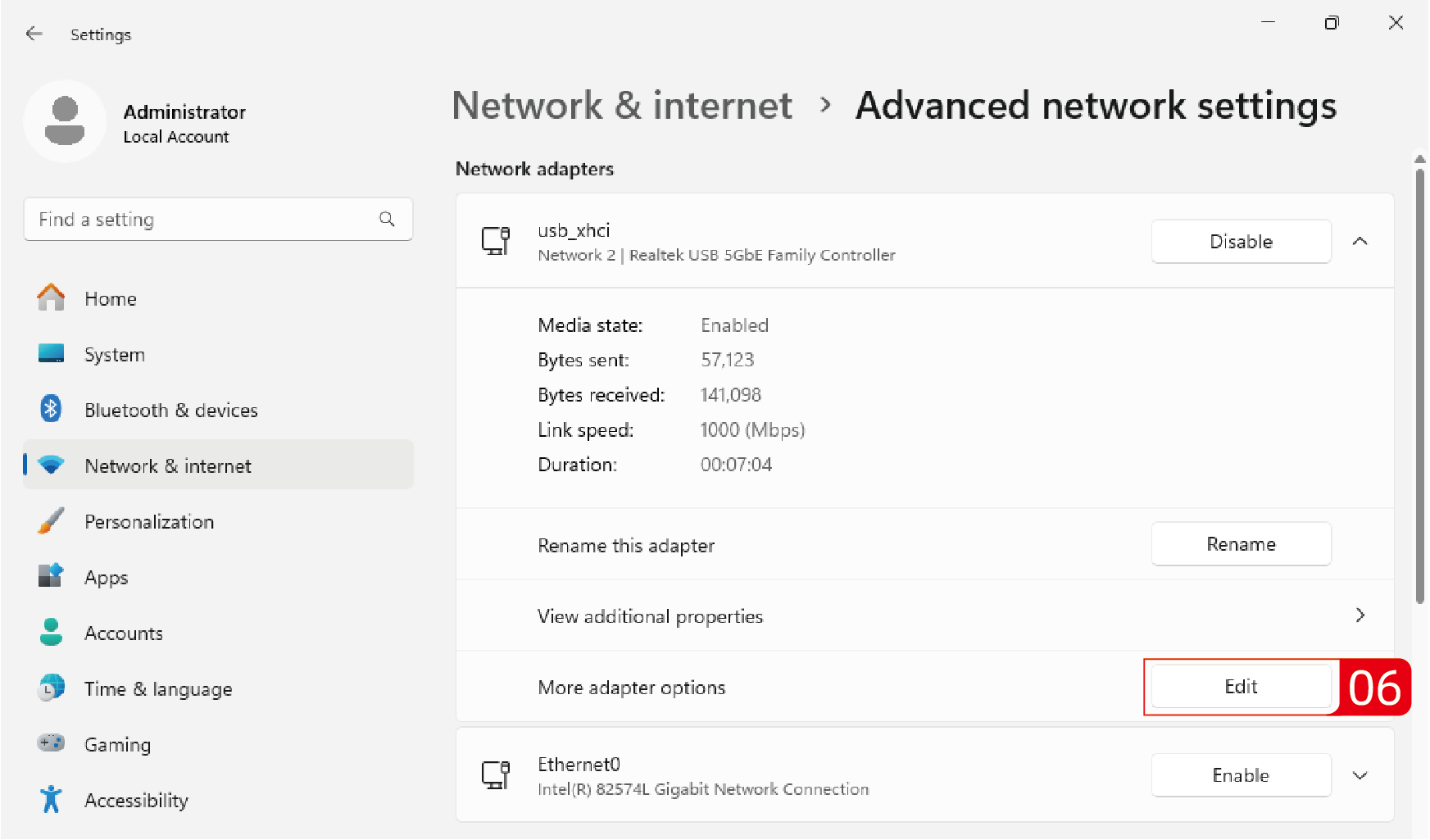1. Locate More adapter options, and click on Edit to configure the properties of the network adapter.
