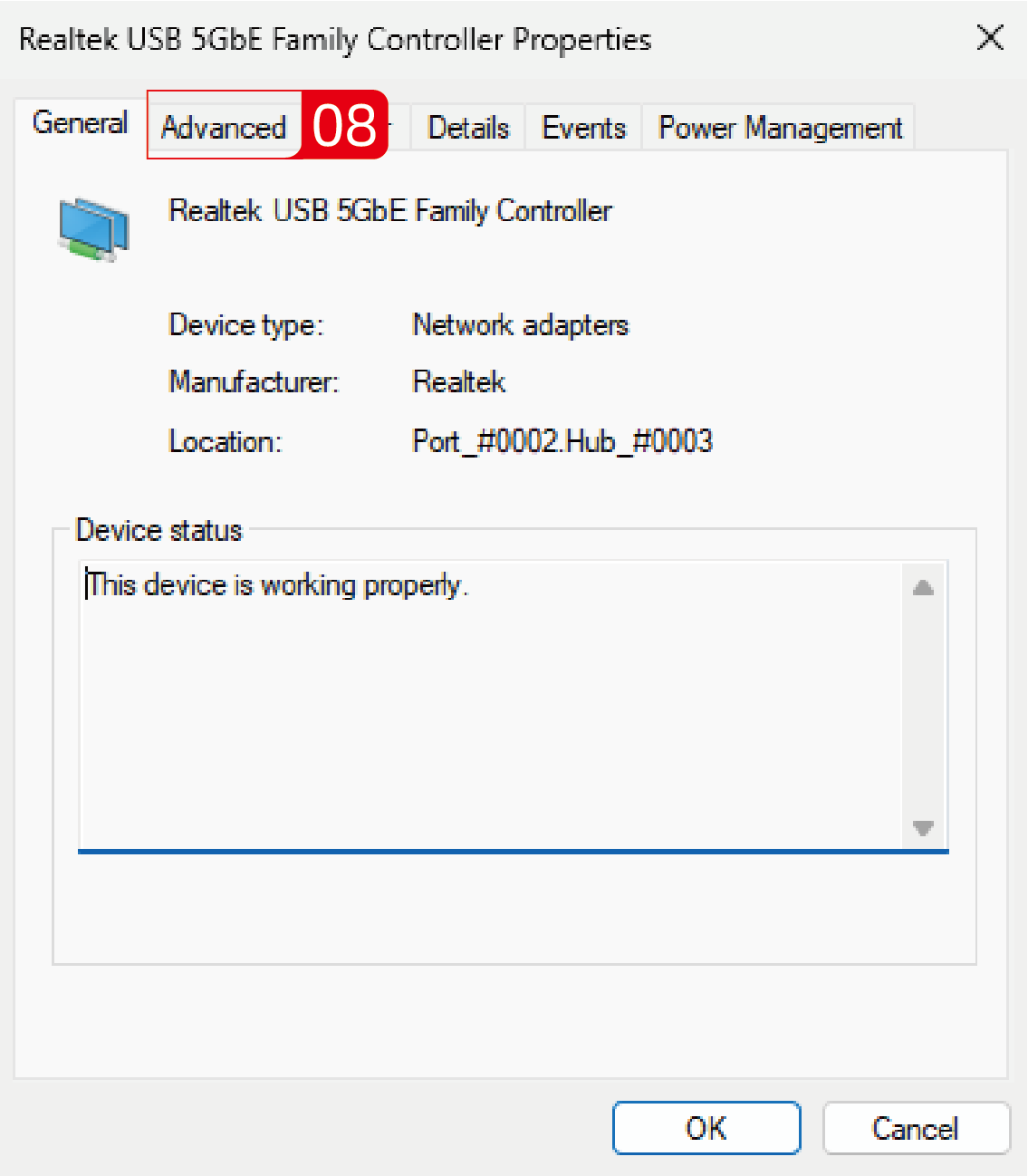1. Locate the Network adapters and find the 10G network card, then click the drop-down arrow icon on the right.