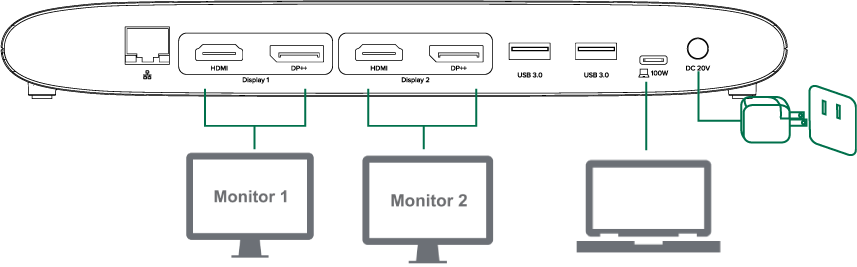 Step 2. Connect Display 1(HDMI or DisplayPort) and Display 2(HDMI or DisplayPort) to monitors.