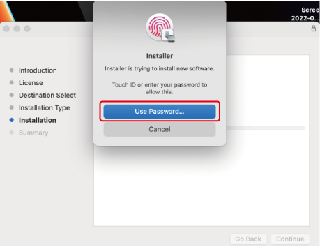 - Click Install and choose Use Password.., then enter the screen password and click Install Software.