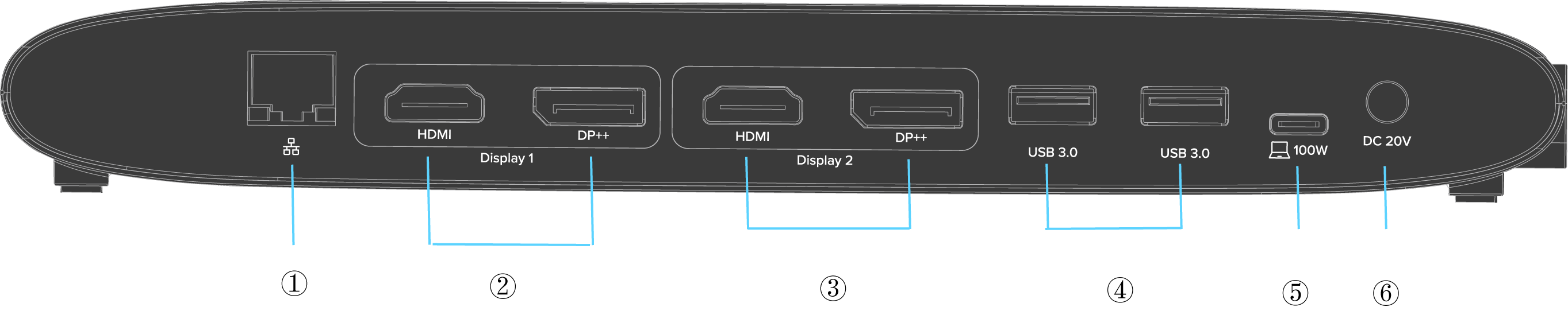 ⑤ USB-C Upstream(Host, PD 100W)
