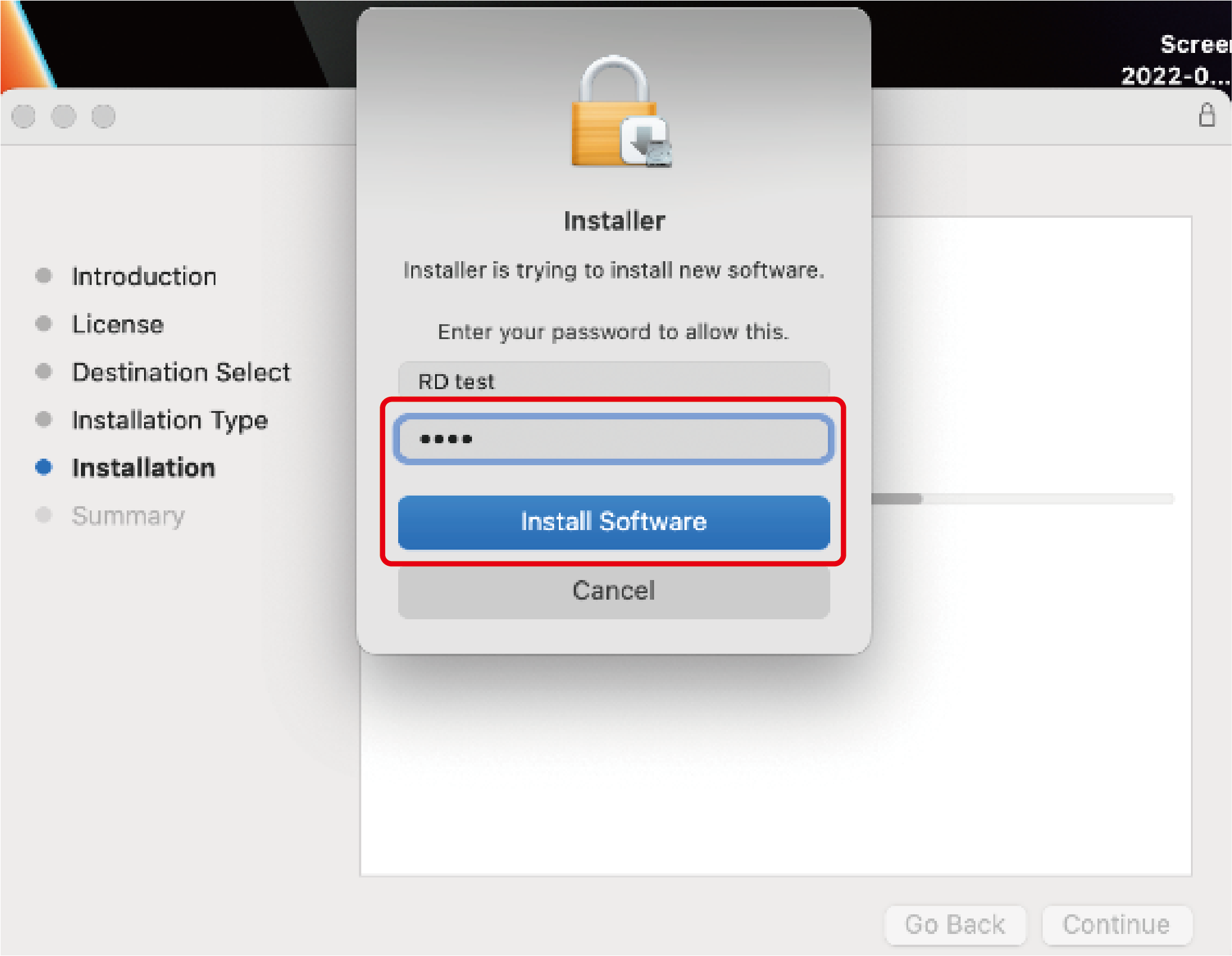 1. Click Install and choose Use Password..., then enter the screen password and click Install Software.
