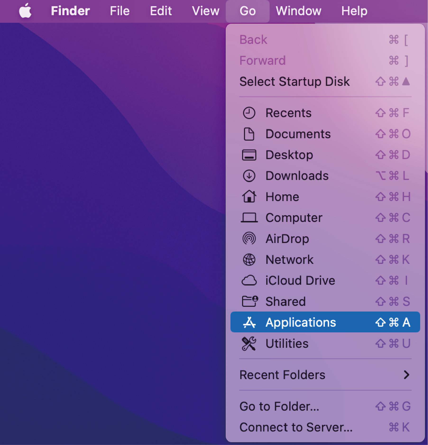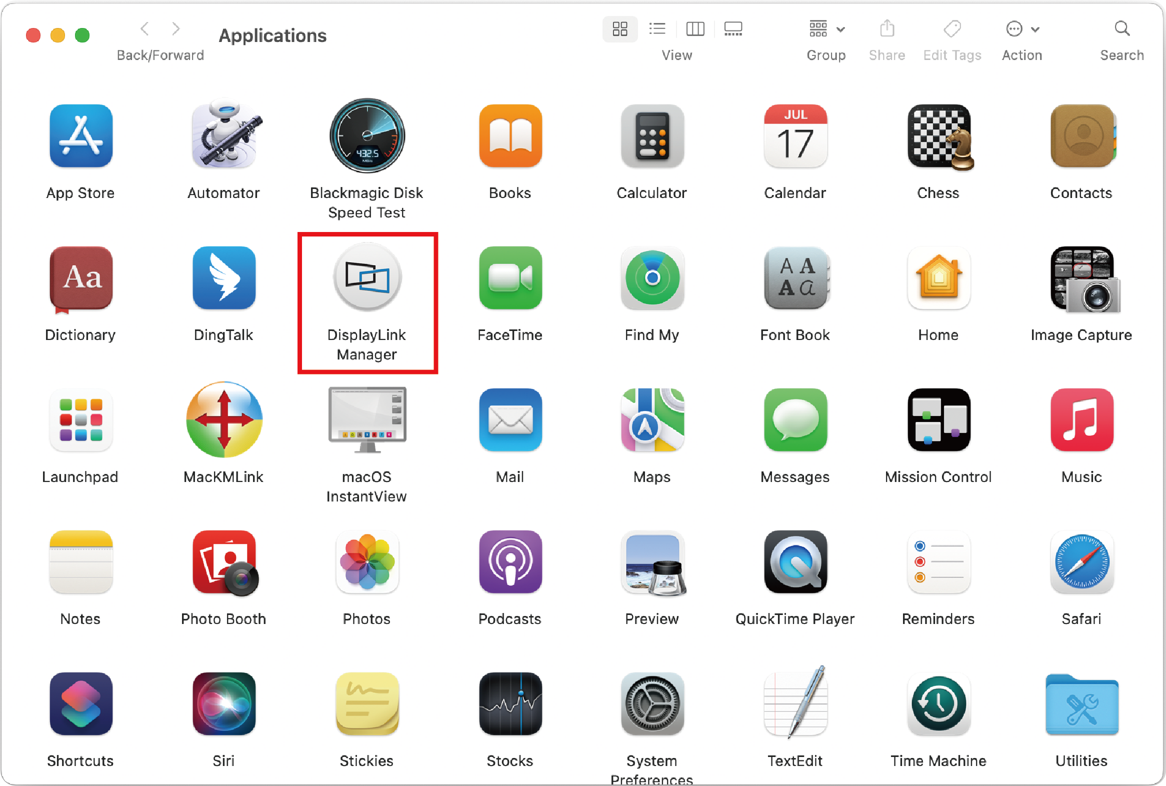1. If you didn't get the notification from DisplayLink Manager, please click Go in the function bar at the top left of screen, then select Applications and click DisplayLink Manager.