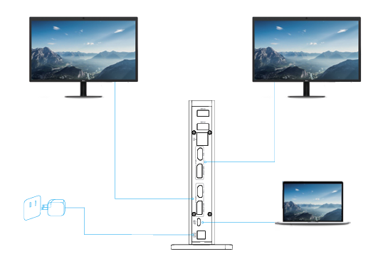 Step 2: Connect Display 1 (HDMI or DisplayPort) and Display 2 (HDMI or DisplayPort) to monitors.