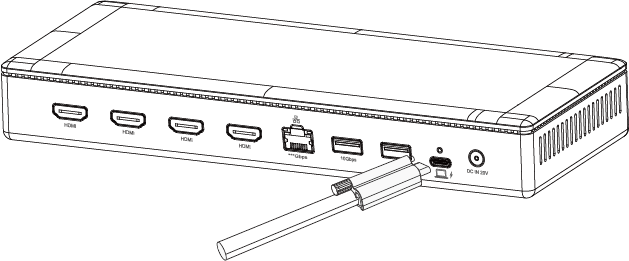- Use the provided USB-C cable to connect the USB-C Host port on the Docking Station to the USB-A/USB-C/Thunderbolt port on your laptop.