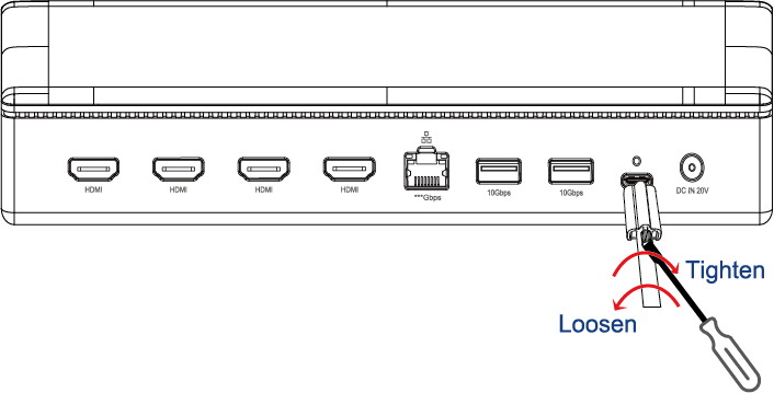 - Align the bolt with the fixing hole, then please connect it to the upstream USB-C Host port.