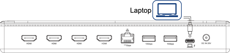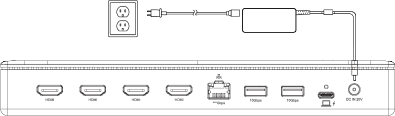 - Plug one end of the included Power Adapter into this Dock's DC IN 20V port and the other end into the power outlet.
