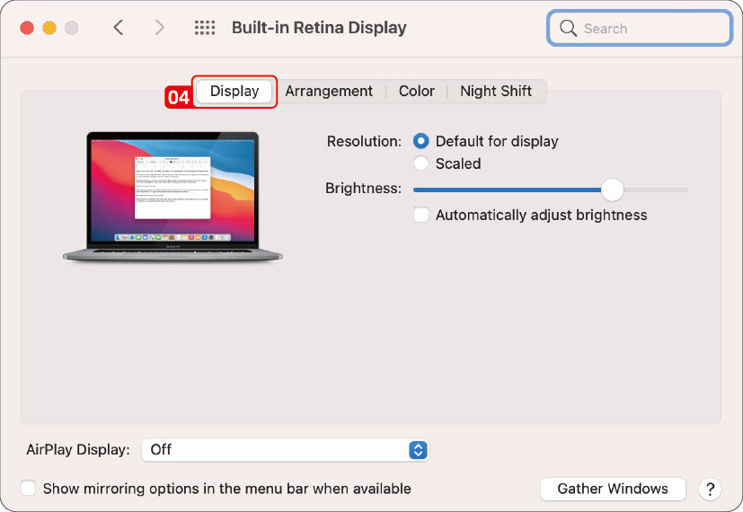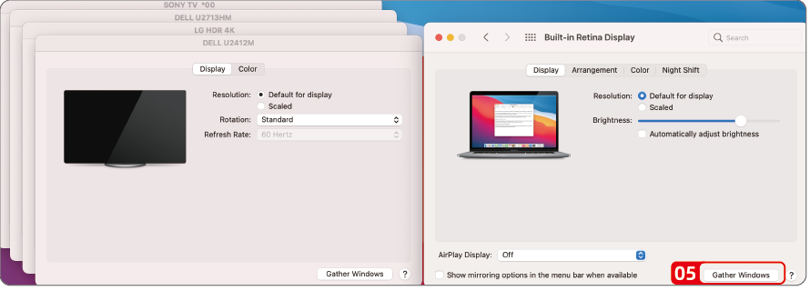 - Or click Gather Windows to gather all connected displays and make separate settings.