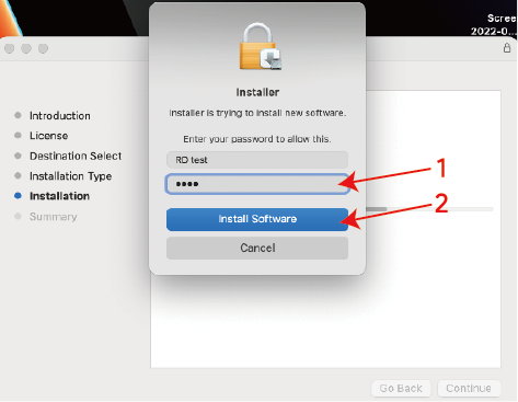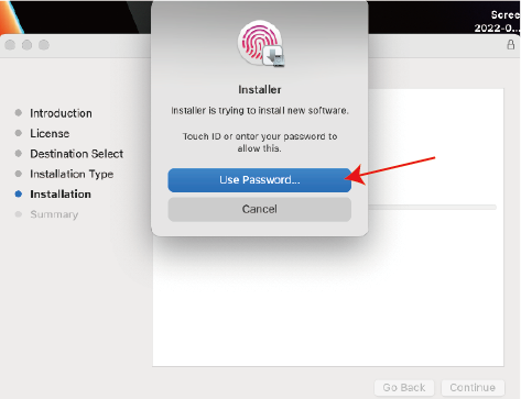 - Click Install and choose Use Password.., then enter the screen password and click Install Software.