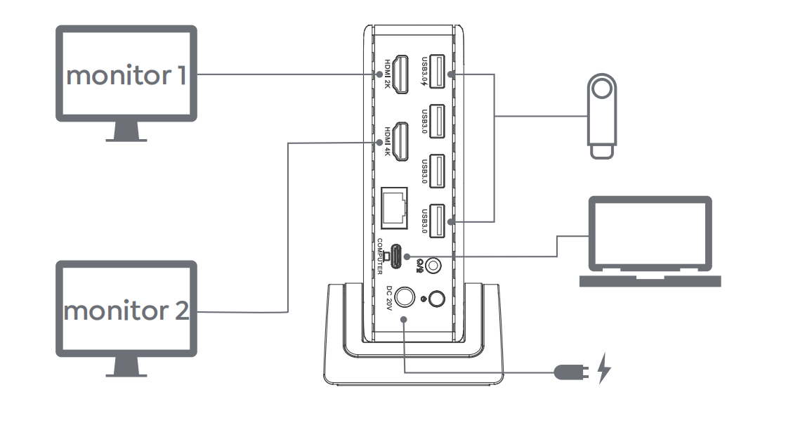 Connect the USB-C Upstream Port on the Docking Station to your laptop.