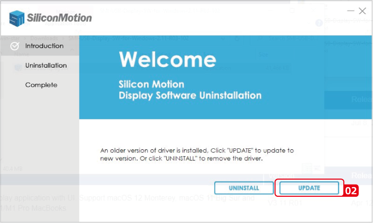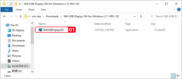 1. After extracting the file downloaded, click SMIUSBDisplaySW(.exe) in the extracted file.