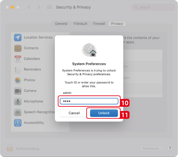 1. If promoted, enter your password and click the Unlock button.
