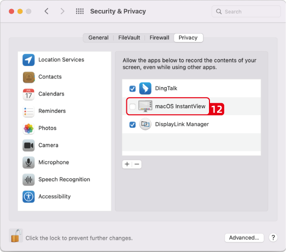 1. Click to and place a check mark next to the macOS InstantView entry.