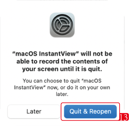 1. You will be prompted to Quit and Reopen the InstantView application in order for the change take effect. So please do so: