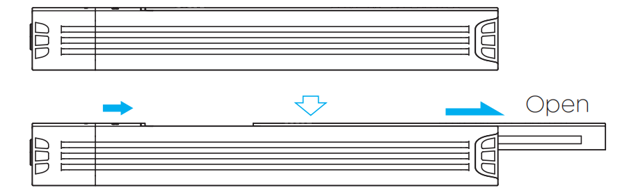 - Slide the top cover of the SSD enclosure in the direction indicated by the arrow to remove it.