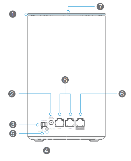 2 . Reset Button: Press and hold for 6 seconds to reset the mesh device.