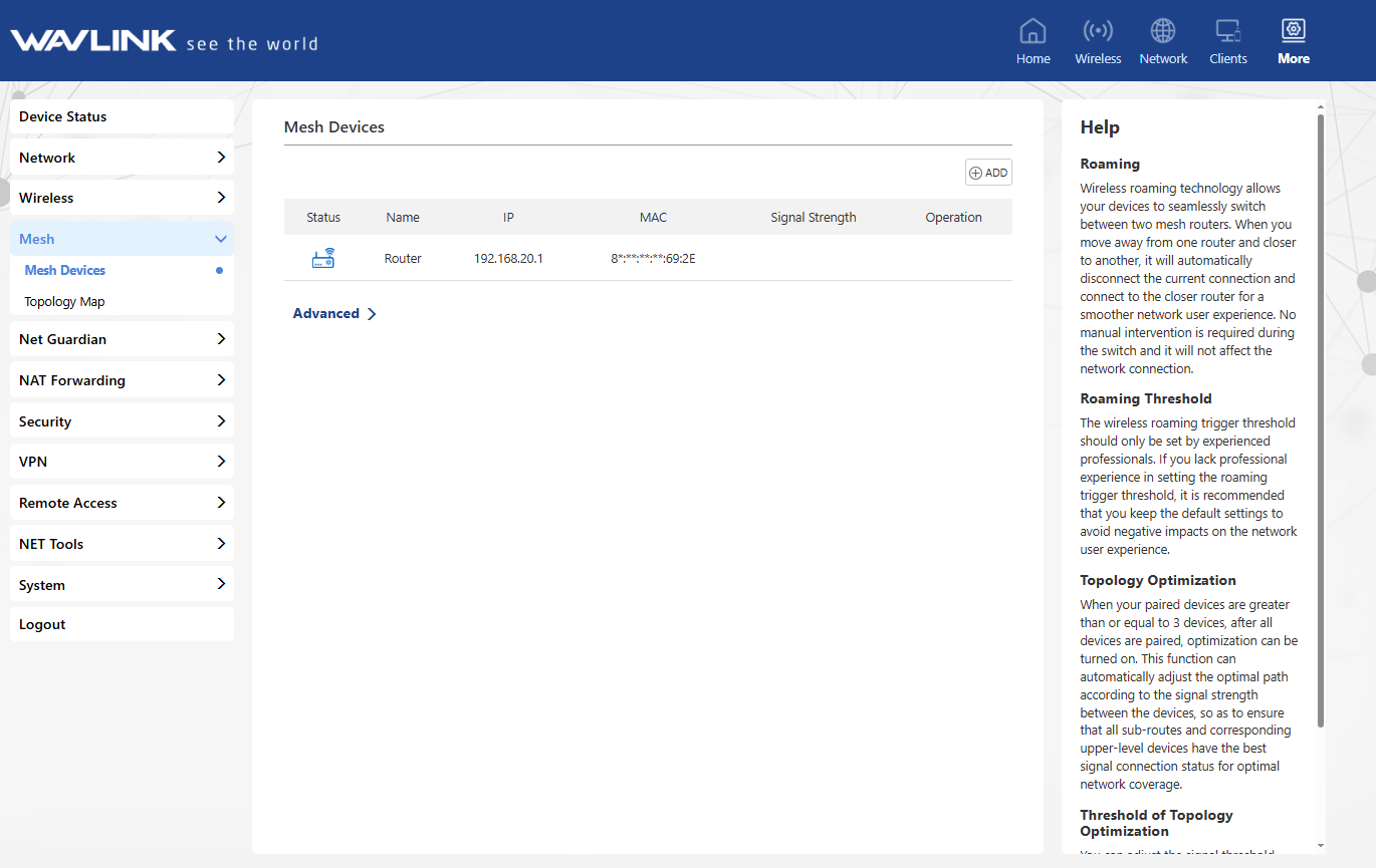 1 . Click “Mesh” and then select “Mesh Devices”.
