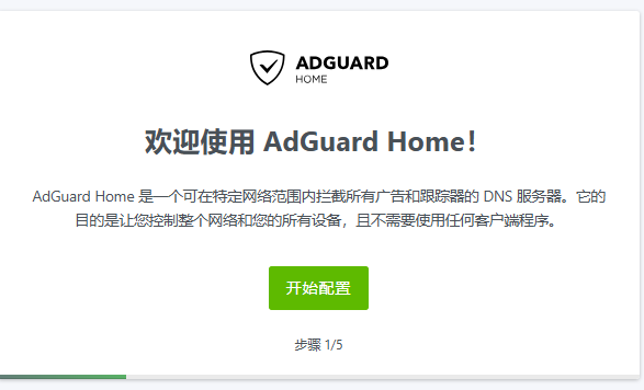 1)进入 ADGuard Home 管理界面,点击 开始配置。