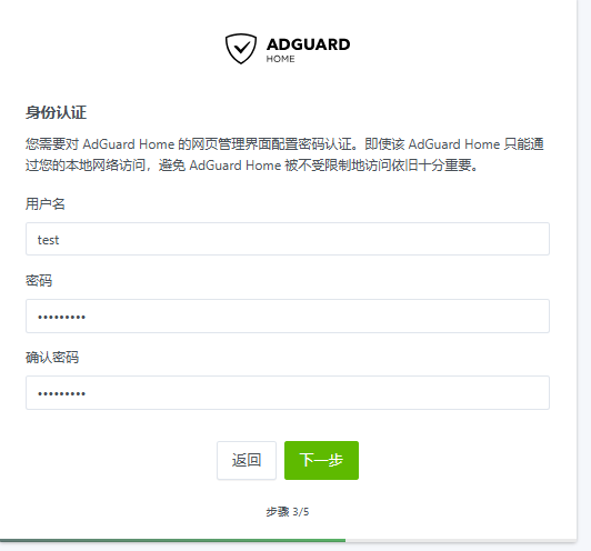 4)设置ADGuard Home 登录的 用户名 和 密码。