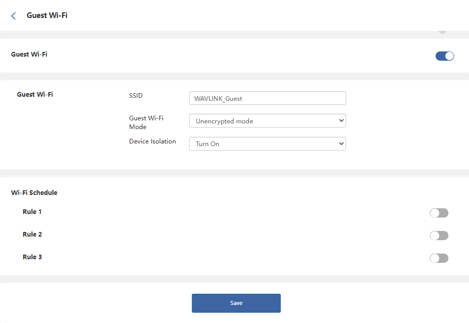 Set the opening time of guest Wi-Fi in the WIFI schedule.